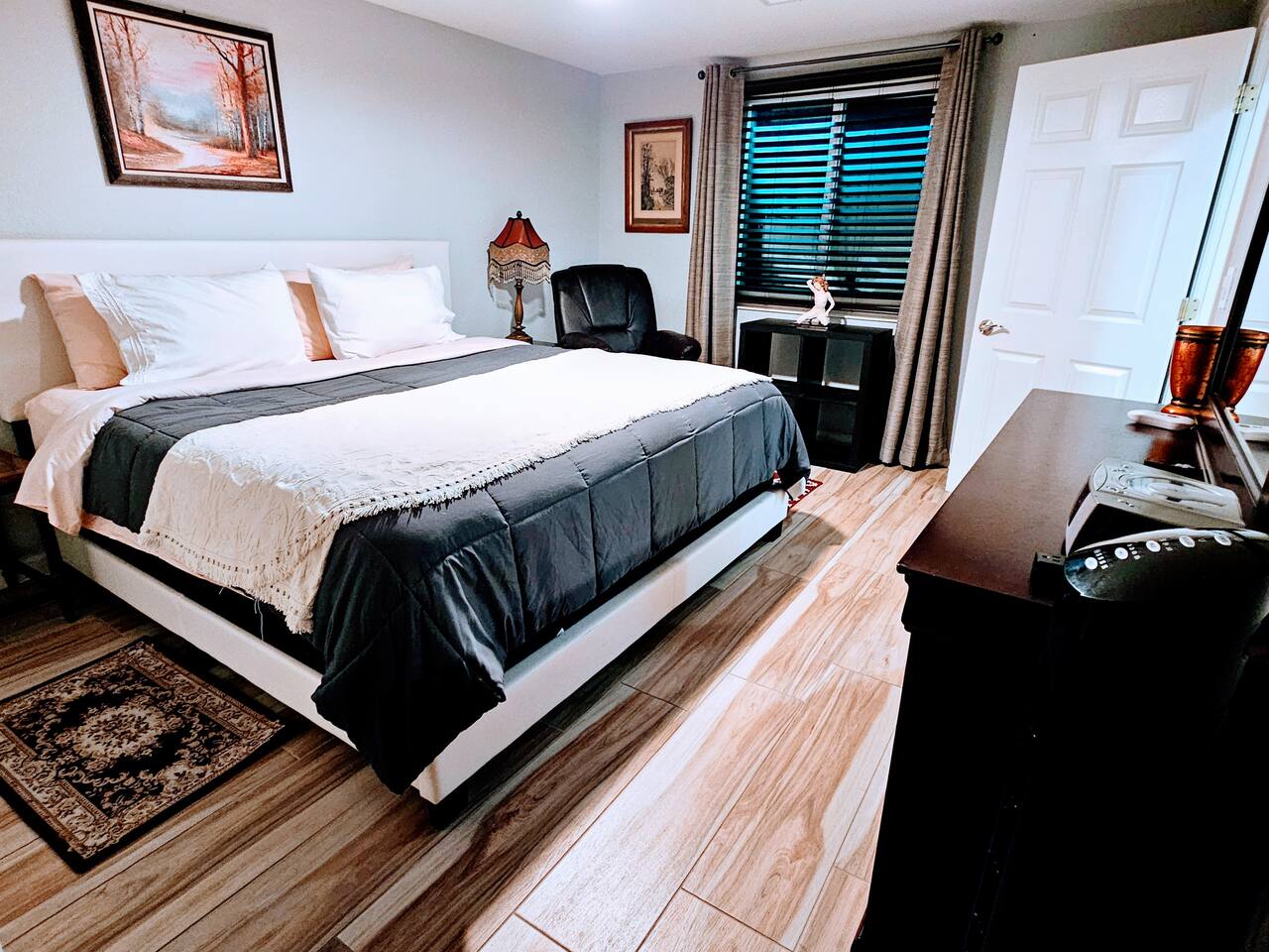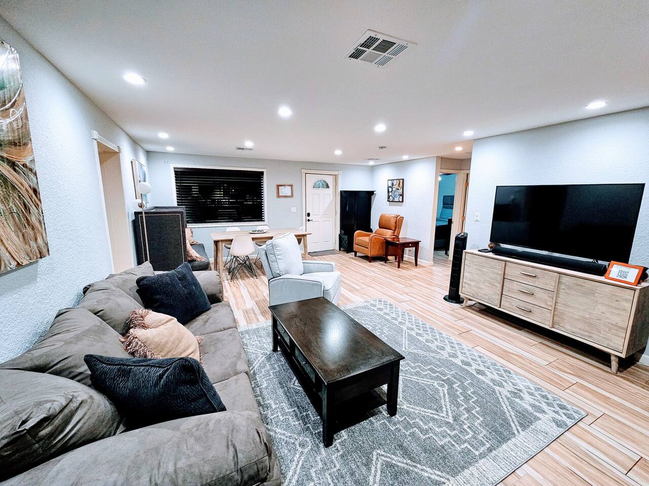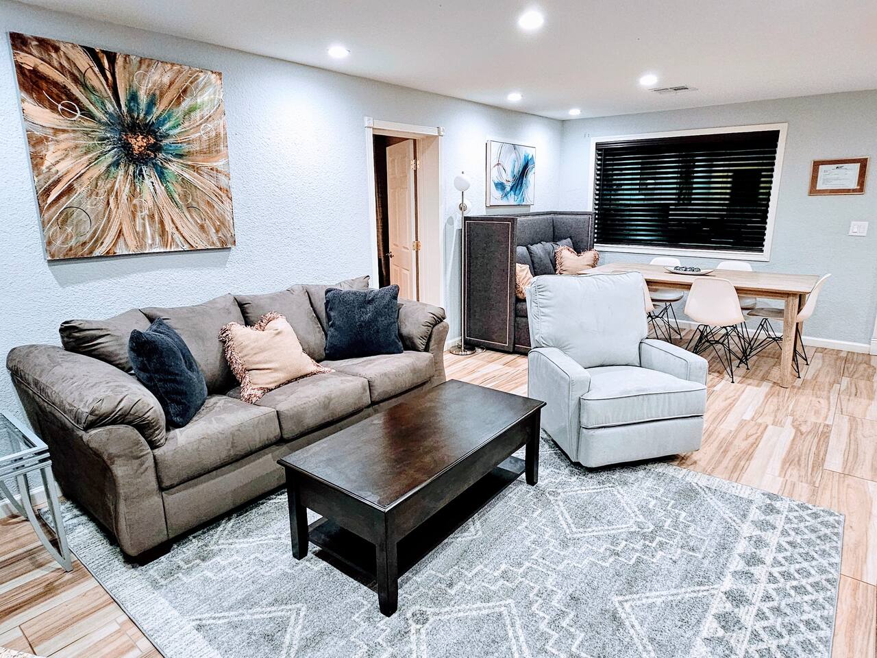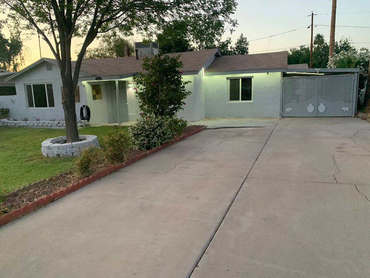 Cozy house was completely remodeled in 2020 and includes 2 bedrooms with queen beds and 1 full bath on one side of the house and a master suite with king bed and full bath on the other side. Kitchen is fully stocked with everything you will need. Open floor plan, a large, private backyard and patio in a quiet neighborhood close to everything in Central Phoenix and conveniently located just a minute to SR 51. There is also a 240-V outlet in the car port to charge electric vehicles.