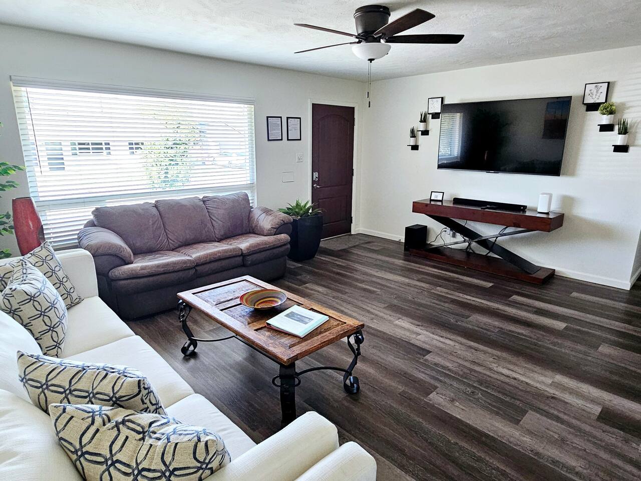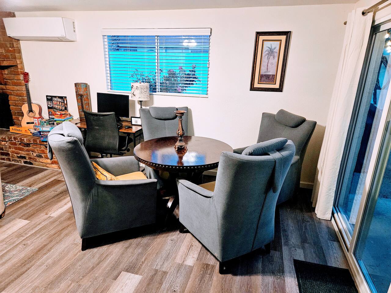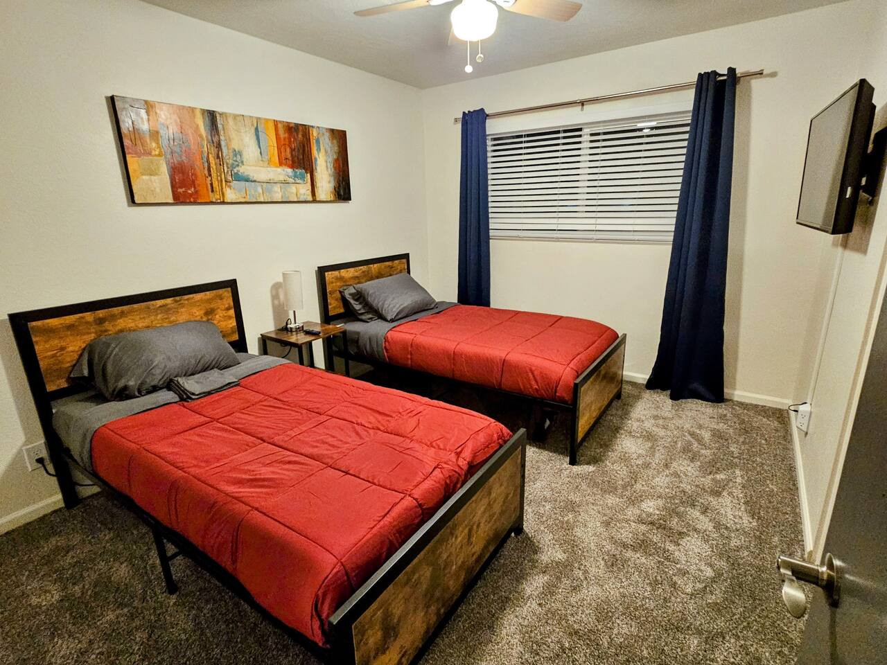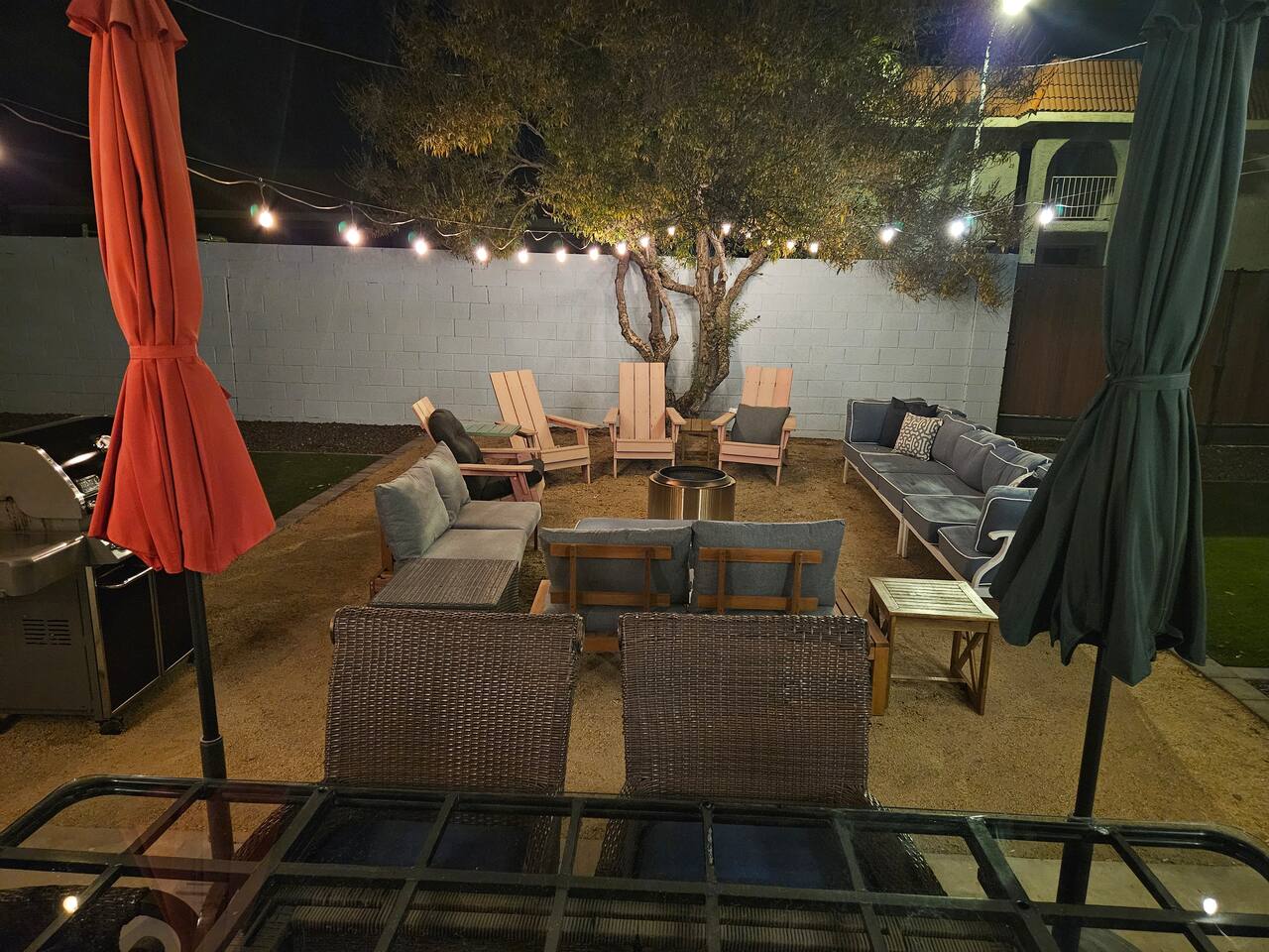 With 2,400 sq ft, this spacious and comfortable home has just about everything you need for a great home away from home. Some of the notable features: - Host that is dedicated to ensuring you have a great stay and available should there be any questions or issues. We only have a few Airbnb properties and provide a personal touch. - 1,000Mbps Cox "Gigablast" Internet and WiFi - Private backyard with grill & amenities. Great for small gatherings and relaxing. - Large, well stocked kitchen and open dining area with seating for 16 - Dedicated work station with a 24" monitor, mouse, keyboard and multi- function printer/scanner to work remotely. - 2 living rooms with large Smart TV's (65" & 86") - 5 Smart TV's throughout the house. - All beds have new memory foam mattresses - A great central location with highway access just a minute away. - Pets welcome with a small $50 pet fee. (no pets under the age of 2) - Great central location. 12 min from the airport & Talking Stick Resort; 10 min to Old Town Scottsdale; 11 min to the Zoo & Desert Botanical Gardens; 20 min to downtown Phoenix The large kitchen and dining area has seating for 16 between the tables and large island. The well-equipped kitchen has most everything (and possibly more) that you will need including a 12-bottle wine fridge; large toaster oven; traditional drip coffee maker as well as a Keurig machine; filtered water at the fridge and kitchen sink; complimentary coffee, K-cups, spices, and much more. There are 2 living rooms, both with large Smart TV's (65" and 86") and Polk soundbar systems. The back living room has a wood-burning fire place, a table with seating for four and a workstation with monitor, keyboard, mouse and printer/scanner for easy remote working. The beds feature new memory foam mattresses and bedding. The master bedroom has a king bed, dresser, Smart TV, two (2) closets and an attached full bathroom. The 2nd bedroom has a queen bed, dresser and closet. 3rd bedroom has two (2) twin beds, a Smart TV, and closet. The 4th bedroom on the other side of the house is 400 sq ft and has two (2) queen beds, the 3rd full bathroom, a kitchenette with fridge, microwave, sink and Keurig coffee machine, a table with seating for four (4), a Smart TV, reclining couch and access to the patio via the sliding glass door. The 2nd full bathroom is located in the hallway by the first three bedrooms. There is a large capacity washer and dryer located off the back living room for your use. Laundry detergent is provided in addition to an iron and ironing board. Vacuums, mops and cleaning supplies also provided. We have a Graco Pack 'n Play Travel Dome LX Playard available. Please let us know when making your reservation if you would like to use it during your stay as it is shared with our nearby property. The backyard was completely remodeled and features a large table on the patio with six (6) oversized, cushioned chairs. In the middle of the yard is the seating area with an outdoor sofa and 4 large chairs around the smokeless fire pit. There's also a hammock and chaise lounge, a Weber Genesis propane grill and a small cooler. There's plenty of parking for up to four (4) vehicles between the covered carport and driveway and additional parking on the street. Scottsdale STR License No. 2028953 AZ TPT License No. 21501772