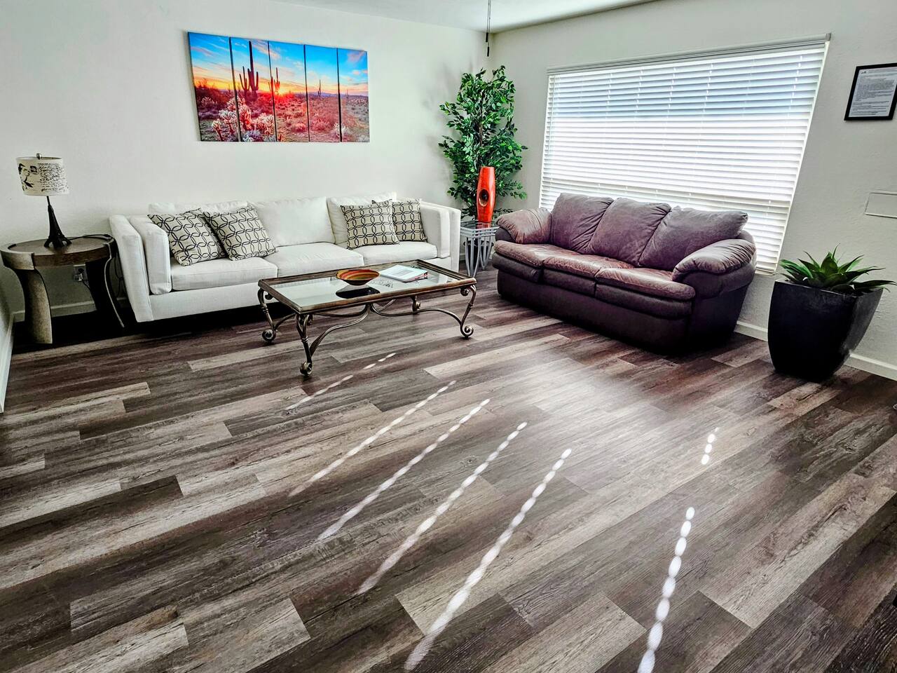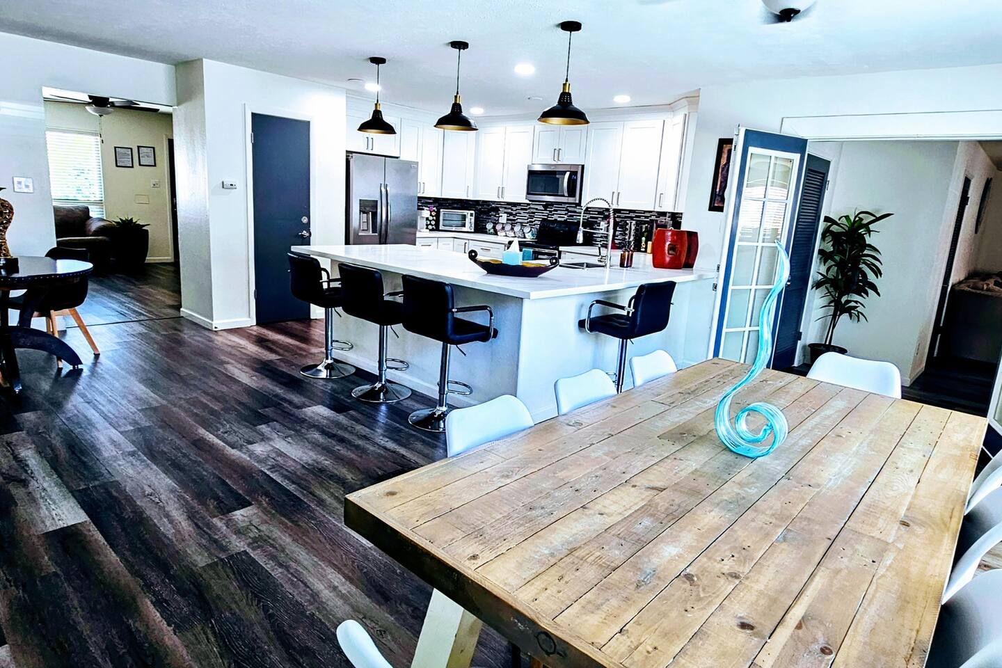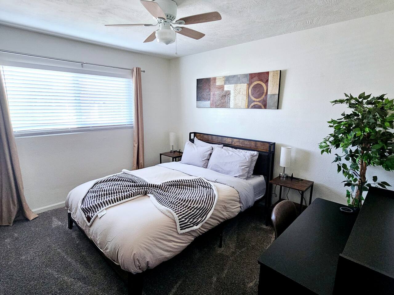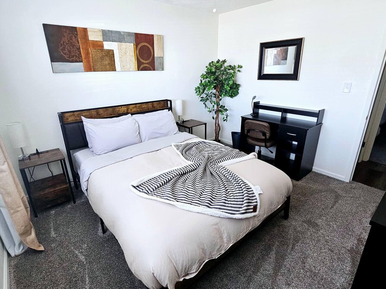 With 2,400 sq ft, this spacious and comfortable home has just about everything you need for a great home away from home. Some of the notable features: - Host that is dedicated to ensuring you have a great stay and available should there be any questions or issues. We only have a few Airbnb properties and provide a personal touch. - 1,000Mbps Cox "Gigablast" Internet and WiFi - Private backyard with grill & amenities. Great for small gatherings and relaxing. - Large, well stocked kitchen and open dining area with seating for 16 - Dedicated work station with a 24" monitor, mouse, keyboard and multi- function printer/scanner to work remotely. - 2 living rooms with large Smart TV's (65" & 86") - 5 Smart TV's throughout the house. - All beds have new memory foam mattresses - A great central location with highway access just a minute away. - Pets welcome with a small $50 pet fee. (no pets under the age of 2) - Great central location. 12 min from the airport & Talking Stick Resort; 10 min to Old Town Scottsdale; 11 min to the Zoo & Desert Botanical Gardens; 20 min to downtown Phoenix The large kitchen and dining area has seating for 16 between the tables and large island. The well-equipped kitchen has most everything (and possibly more) that you will need including a 12-bottle wine fridge; large toaster oven; traditional drip coffee maker as well as a Keurig machine; filtered water at the fridge and kitchen sink; complimentary coffee, K-cups, spices, and much more. There are 2 living rooms, both with large Smart TV's (65" and 86") and Polk soundbar systems. The back living room has a wood-burning fire place, a table with seating for four and a workstation with monitor, keyboard, mouse and printer/scanner for easy remote working. The beds feature new memory foam mattresses and bedding. The master bedroom has a king bed, dresser, Smart TV, two (2) closets and an attached full bathroom. The 2nd bedroom has a queen bed, dresser and closet. 3rd bedroom has two (2) twin beds, a Smart TV, and closet. The 4th bedroom on the other side of the house is 400 sq ft and has two (2) queen beds, the 3rd full bathroom, a kitchenette with fridge, microwave, sink and Keurig coffee machine, a table with seating for four (4), a Smart TV, reclining couch and access to the patio via the sliding glass door. The 2nd full bathroom is located in the hallway by the first three bedrooms. There is a large capacity washer and dryer located off the back living room for your use. Laundry detergent is provided in addition to an iron and ironing board. Vacuums, mops and cleaning supplies also provided. We have a Graco Pack 'n Play Travel Dome LX Playard available. Please let us know when making your reservation if you would like to use it during your stay as it is shared with our nearby property. The backyard was completely remodeled and features a large table on the patio with six (6) oversized, cushioned chairs. In the middle of the yard is the seating area with an outdoor sofa and 4 large chairs around the smokeless fire pit. There's also a hammock and chaise lounge, a Weber Genesis propane grill and a small cooler. There's plenty of parking for up to four (4) vehicles between the covered carport and driveway and additional parking on the street. Scottsdale STR License No. 2028953 AZ TPT License No. 21501772
